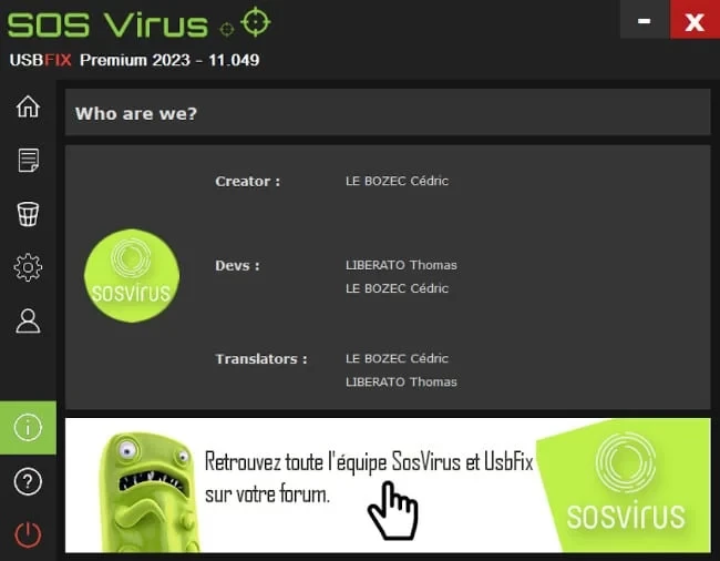 USBFix dikembangkan oleh SOSVirus khusus untuk bug yang menyebar melalui media USB yang dikenal sebagai virus pintasan. Alat ini menghentikan infeksi yang dapat menyebar dari komputer ke komputer, memulihkan fitur keamanan, registri, dan pengelola tugas yang rusak, menyembunyikan berkas, dan sebagainya. Selain itu, alat ini terus diperbarui dan menginformasikan tentang ancaman baru. Alat ini menawarkan layanan bantuan teknis daring dengan para ahli yang efisien untuk menjawab pertanyaan Anda.